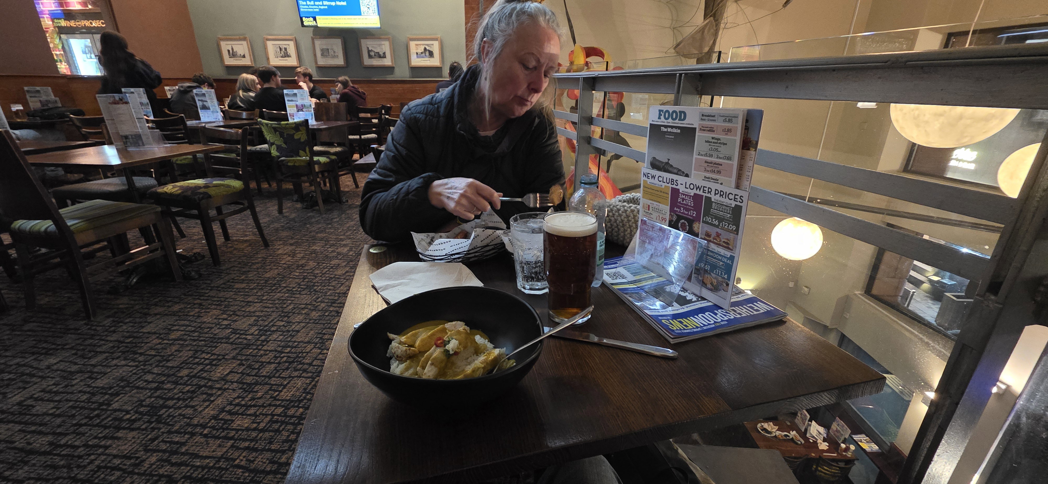 We had a couple of pints in the White star and checked out the photos and memorabelia before getting on the bikes and heading to the Wetherspoons for a curry and a pint.