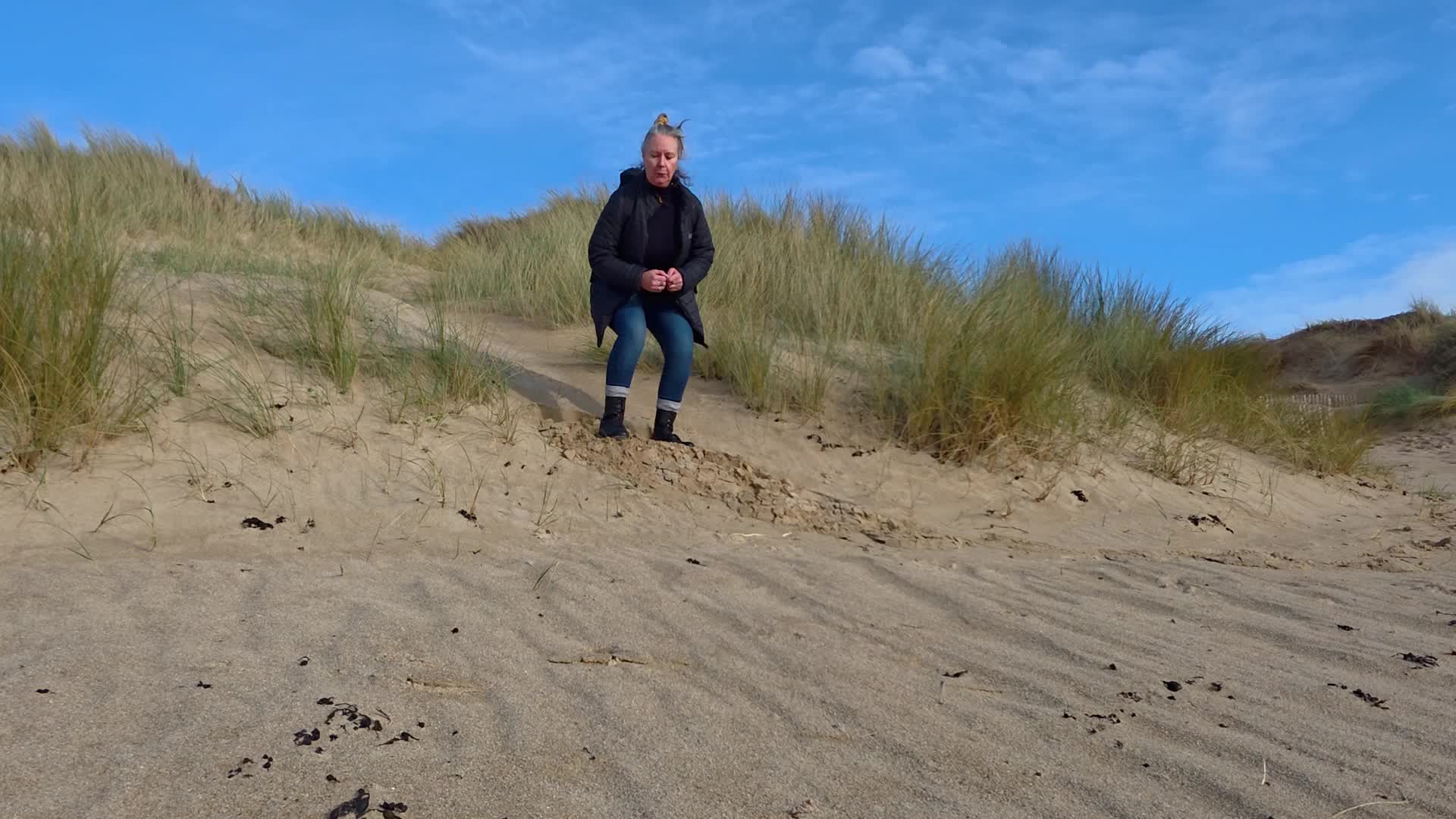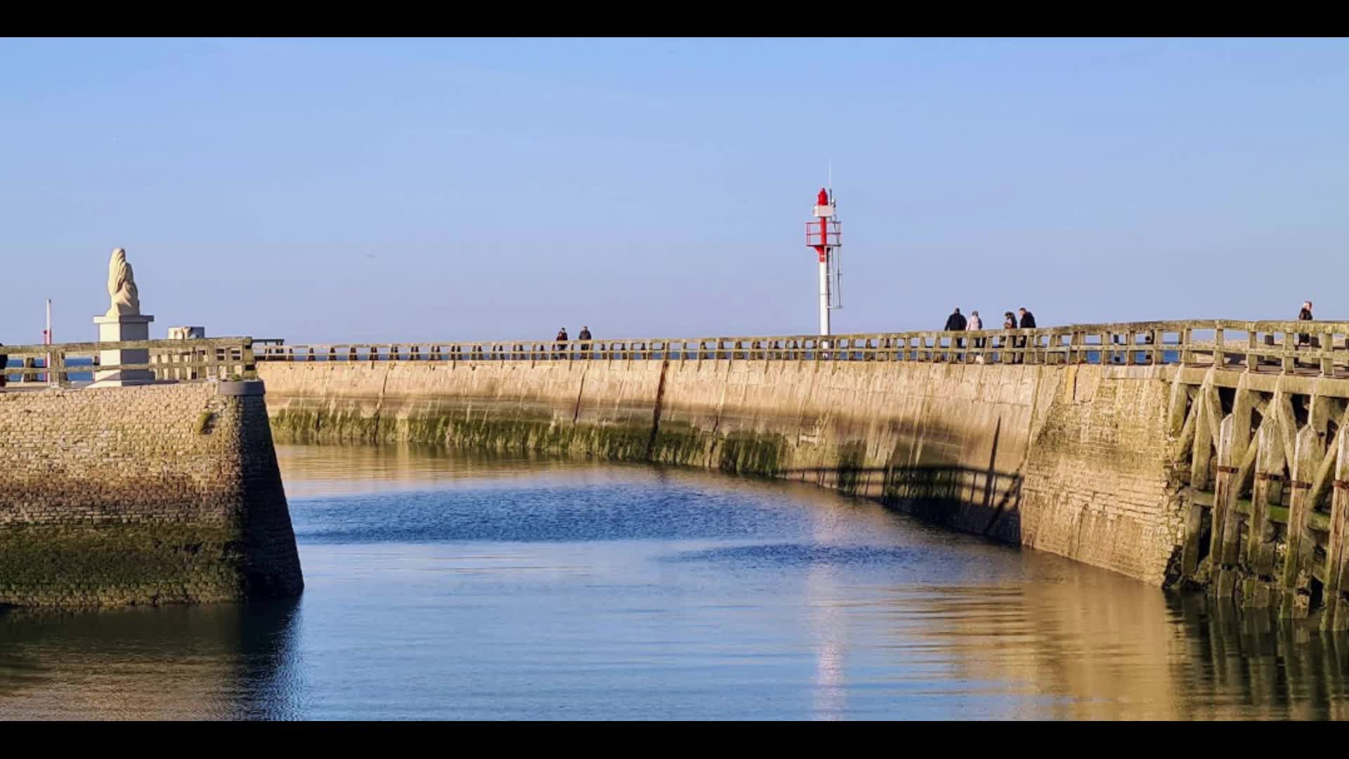 On the beach and out at sea were the remnants of the temporary harbour, the Mulberry B which was used on this, Gold beach, soon after the D-Day landings here in June 1944.