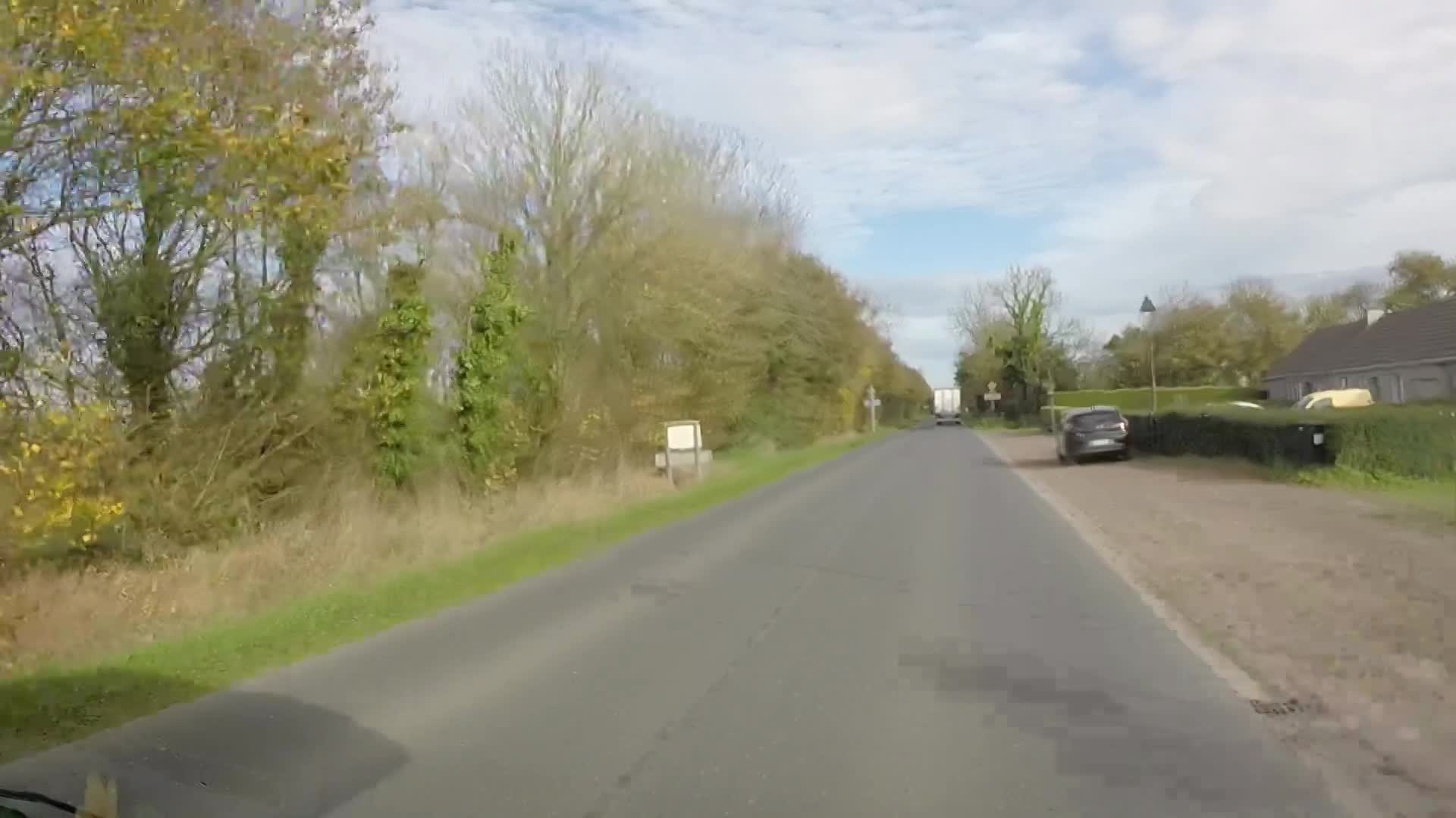 That was a noisy night but an even noisier early morning as the large tractors and larger trailers and articulated lorries started work. It was also very windy now and the small branches of the trees which we had parked next to tickled the side of the van.