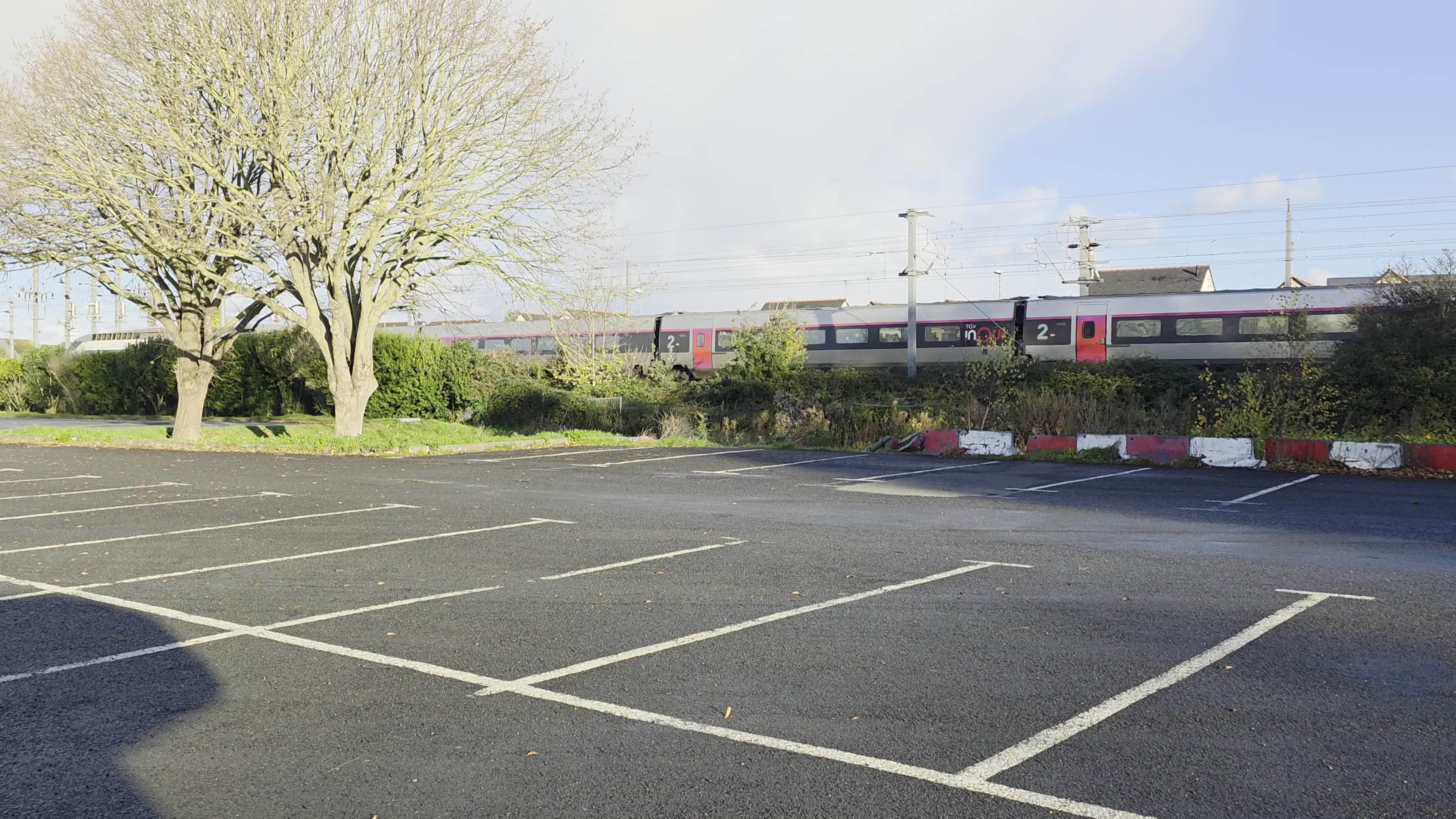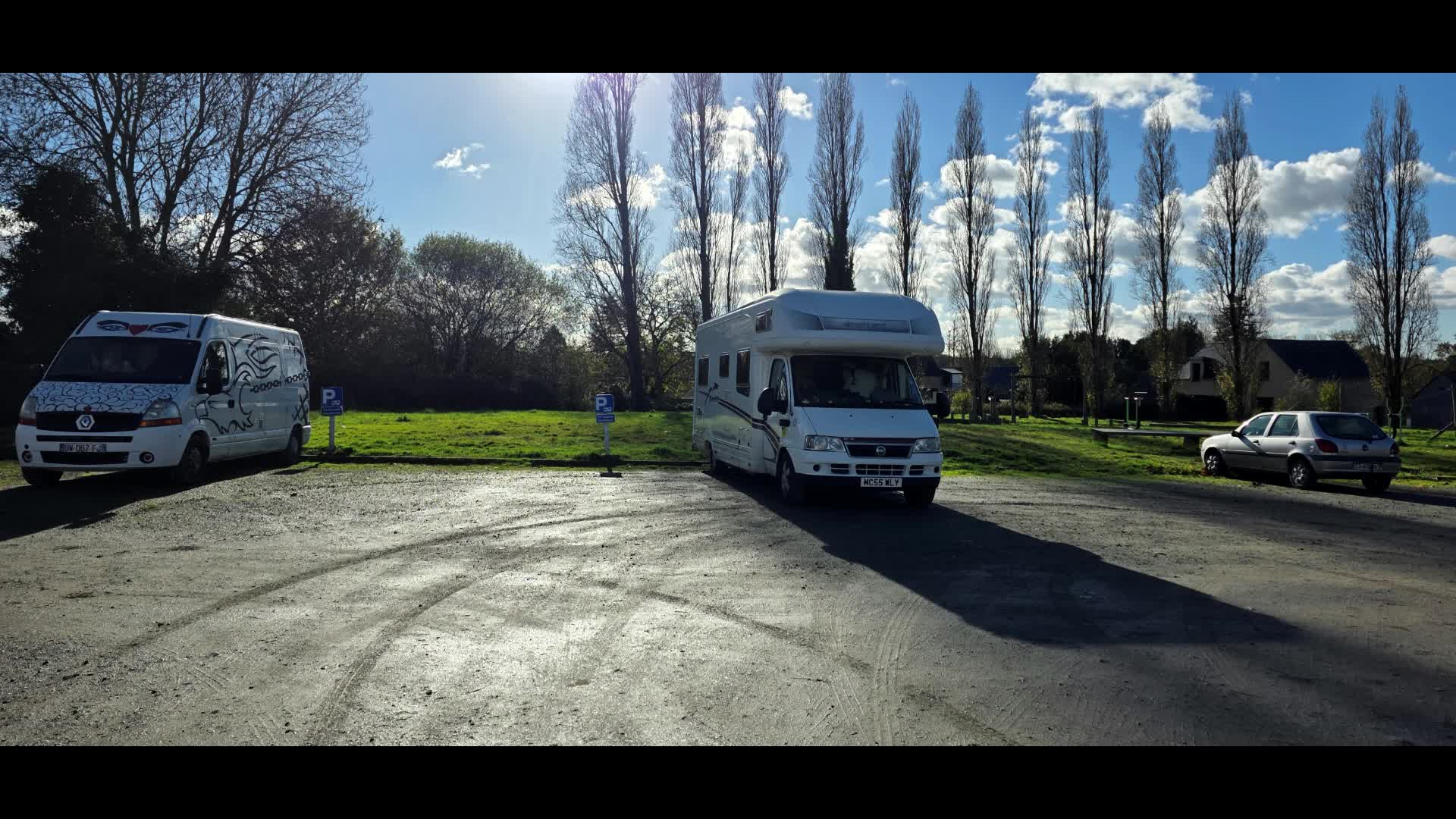 We pulled into the aire and collected the ticket at the barrier, parking at the end of the car park and away from the railway.