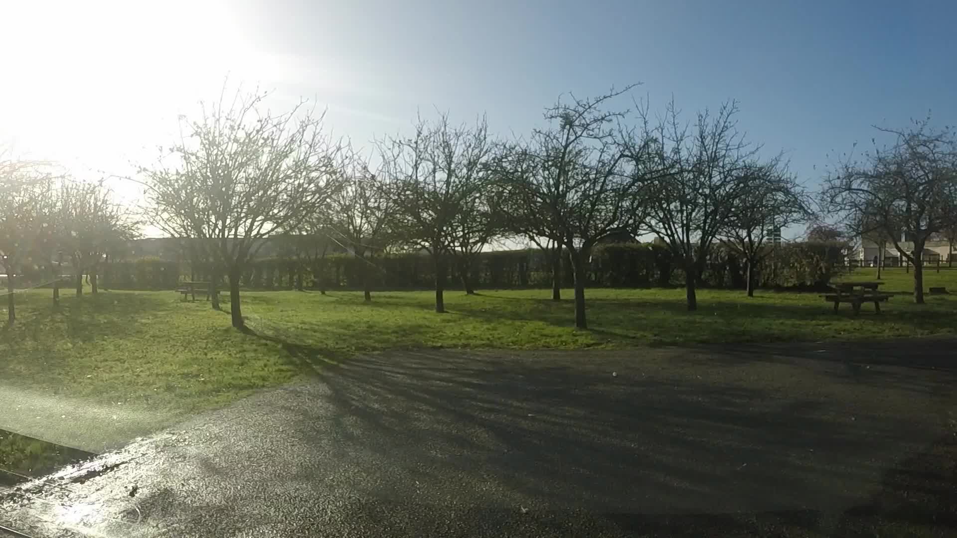 Our propane bottle ran out overnight and Andy got up and changed the bottle over to our spare and put the kettle on for tea. A quick shot of the aire as the train went by and then we got the van ready and got on the road, heading for a free aire in the village of Saint Solen.